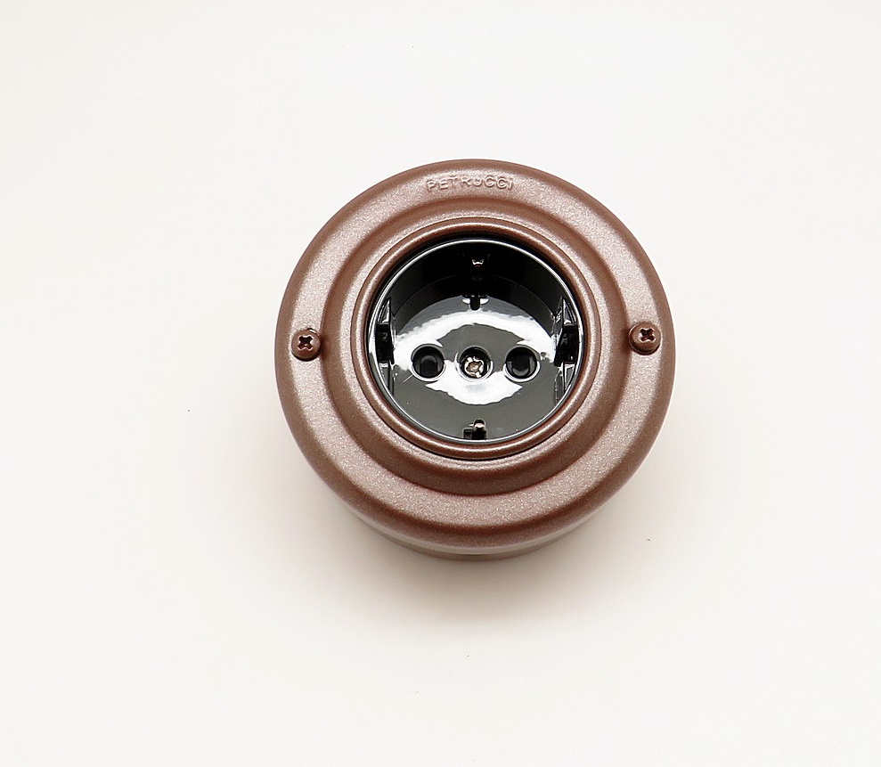 Ретро розетка электрическая Petrucci, металл, бронза белая вкладка с муфтой 1 000 руб. / шт.